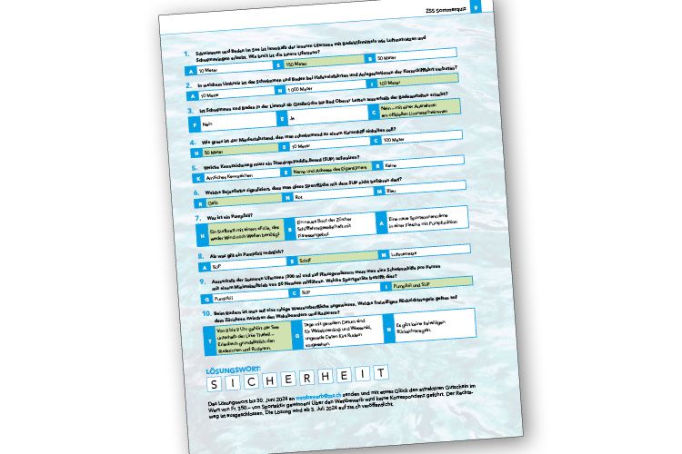 Hier finden Sie die Lösung vom Sommerquiz aus dem Zürisport Juni. Wir wünschen Ihnen einen schönen Sommer und viel Freude beim sicheren Schwimmen im Zürisee!
