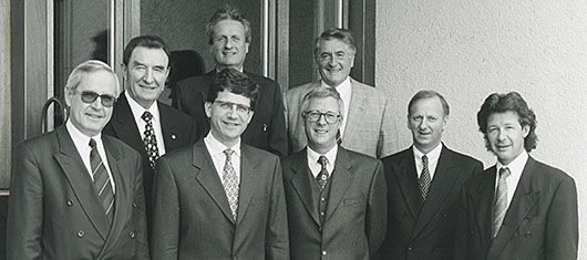 Der ZSS-Vorstand unterstützt die parteilose «Sportministerin» Monika Weber und nimmt mit einem Rudervierer an der Jubiläumsregatta des Akademischen Sportverbands Zürich teil. Das Boot mit Hermann Schumacher, Erich Ogi, Fränzi Rota und Daniel Gundelfinger gewannen ein Rennen gegen den Vorstand des ZKS.